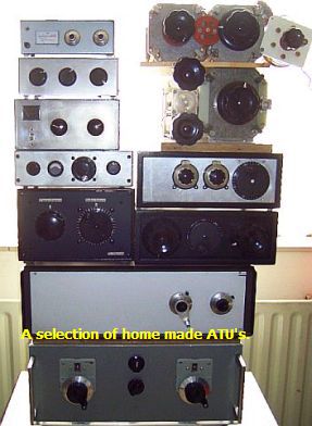 Left: a selection of home made ATU's, right Pi filter ATU 14 - 30 MHz.