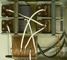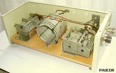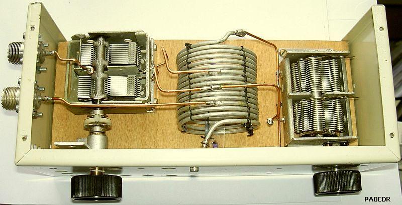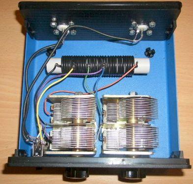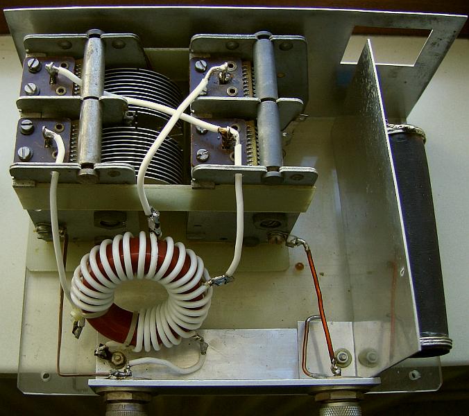 Dual 2 × 470 pF variable capacitors discarded from vintage receivers are very suitable and in this design can handle 400 W or a little more with many antenna systems. The free space between a fixed and rotating plate will be approximately 0.6 - 1 mm. With the capacitor almost at minimum, the 40 m band is covered and therefore the smallest possible zero capacity is important. If it is too large, tuning on 40 m may or may not be successful. The 20 m range is largely determined by the variable capacitance between the second and third tap of the coil.