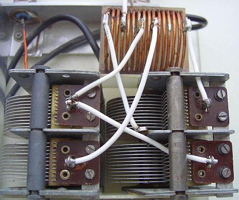 Capacitors with a smaller plate spacing are suitable for around 100 W. Types of plastic are suitable for QRP sets. Values of 2 × 350 pF can also be used, but make sure that the coil is approximately 8 µH.
