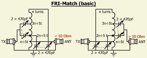 Essentially the FRI-match is a 'kiss' approach, cheaper and almost fast as an automatic ATU provided that the calibrated settings on each band for minimum SWR are known so that the capacitors can be quickly reset