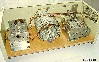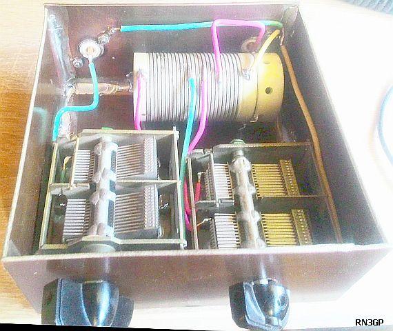 The operation of the coil is rather complex. Most bands are tuned by windings to the second tap. The complete coil are for 80 m and 20 m. The twin variable capacitor plays an important for tuning the 20 m band and usually two matches can be obtained on that band. Choose the point where the capacitor has the largest capacitance. With the capacitor almost at minimum capacitance the 40 m and 10 m band are covered.