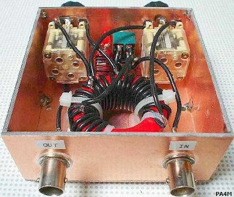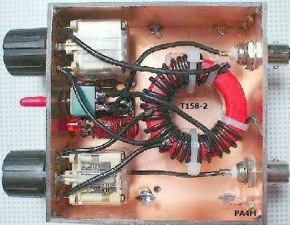 PA4M made the design with a built-in N7VE SWR indicator so that no separate SWR meter was needed. He uses his FRI-match with a DIY 30 m CW transceiver. He has not yet been able to test the efficiency of the tuner, but matching is very smooth. The toroidal core is a T158-2 because it happened to be present unused.