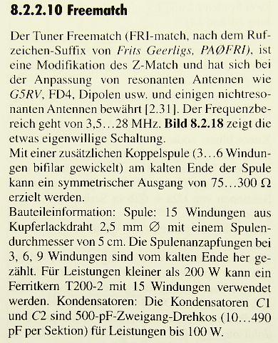 In the well-known Antennenbuch by Karl Rothammel, DM2ABK, Y21BK (SK) are a lot of information about antenna systems, tuners, coaxial cables etc. It is a good informative reference work. This tuner is at present one of the regular topics of this book.