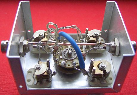 Voor 70 cm diende een 7 cm dikke (blauwe) draad van als "stripline". Verrassend genoeg was met deze 70 cm tuner ook de 2 m band "plat" te krijgen.