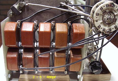 Voor het steeds parallel erbij schakelen van 400 pF zijn oude bruine blokcondensatoren (fig») uit (ex US army) tuning units gebruikt. Zij worden nog regelmatig voor een redelijke prijs aangeboden op vlooienmarkten.