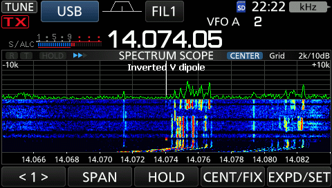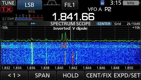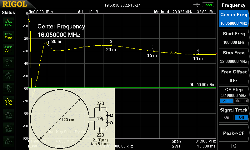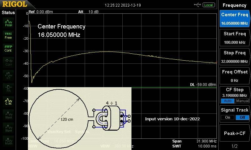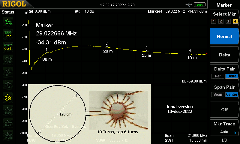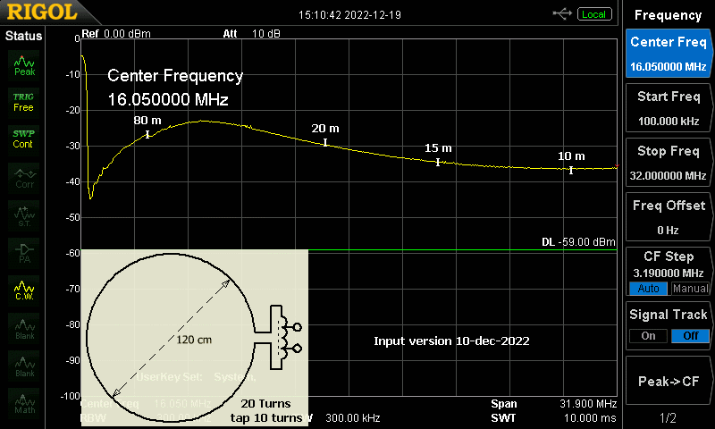 Het signaal van de actieve loop antenne (versie 03-dec-2022) is meestal iets minder dan dat van de inverted V draadantenne, maar vaak zijn dan zwakke sations beter te ontvangen..