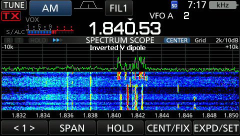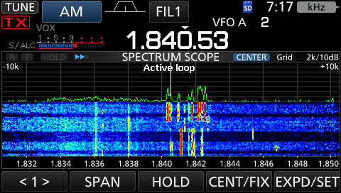 Het is voorgekomen dat er toevallig twee stations op 40 m precies op dezelfde frequentie bezig waren. Dat had ik niet in de gaten, maar bij het overschakelen van dipool naar loop en terug, was alleen een van beide te horen. Dus op de dipool de ene zender en op de loop de andere zender.