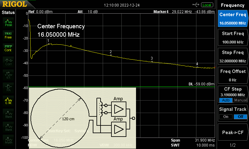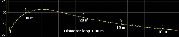 Als zendantenne voor de spectrumanalysator werd een even grote loop van 120 cm doorsnede gebruikt.