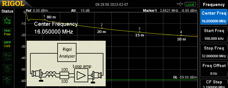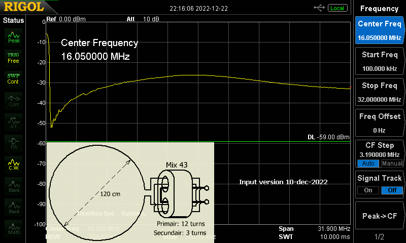 Het blijkt dat een autotrafo tussen de loop en versterker op de hogere HF banden meer signaal oplevert.