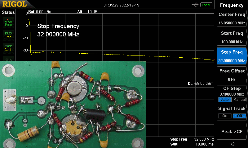 Naarmate de frequentie hoger wordt, komt de afnemende versterking behoorlijk overeen met dat van de ontvanger in gangbare HF transceivers.