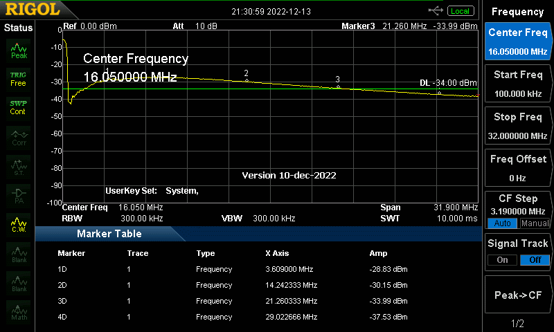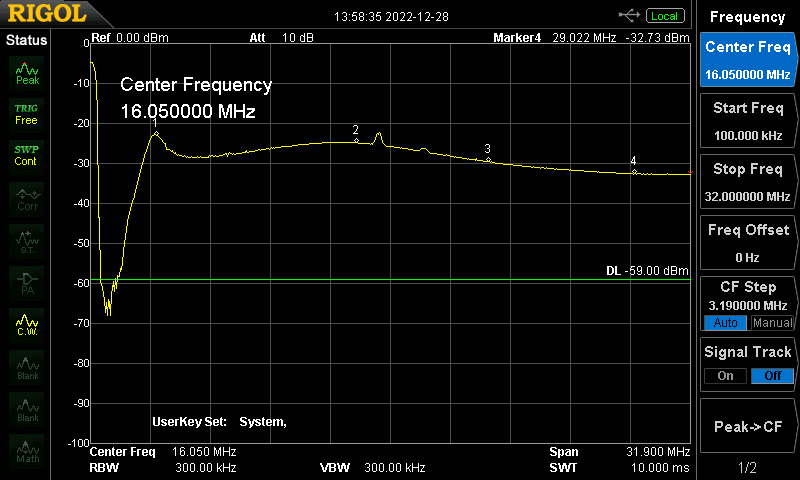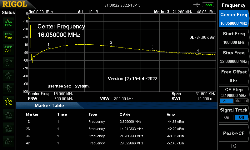 Naar mate de frequentie hoger wordt, komt de afnemende versterking behoorlijk overeen met dat van de ontvanger in gangbare HF transceivers.