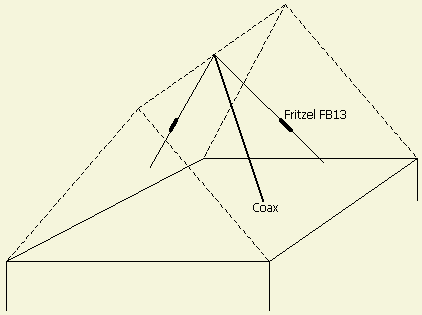 Geruime tijd heb ik goede resultaten bereikt met een 3 banden Fritzel dipool als inverted V tegen het dak van de zolder. Nadeel is meer storing door consumenten elektronica. |