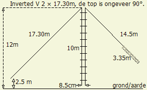 Een inverted-V of omgekeerde V antenne is een bijzondere vorm van een antenne. Het is ook een dipool met het voordeel van één hoog ophangpunt en twee lagere punten.