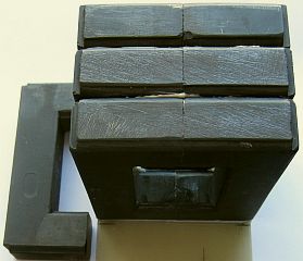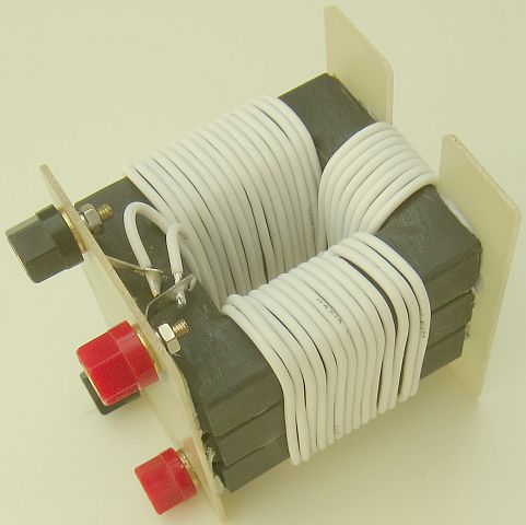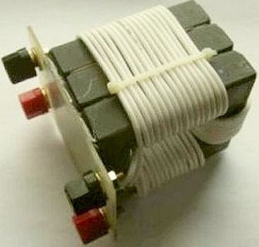 With two components 'power' adhesive, four cores were bonded together as a rectangular 'ring core'. Then equipped with 2 × 15 windings fairly thin Telon wire. The inductance was about 200 μH and with 500 W transmission power the cores remained stable, only the thin wire became hand warm. That gave courage and because three C-cores are left, two were used to add another rectangle.