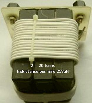 With thicker Teflon wire, 2 × 3.40 m, was only room for a maximum of 2 × 20 windings with a self-inductance of 253 μH per wire. This value is an impedance of 2940 Ohm for 1,850 MHz. The 253 µH is perhaps inadequate on 160 m for an all band antenna system, but usually suited for the higher bands. Forn example 80 m: 2 × 2940 = 5880 Ohm!