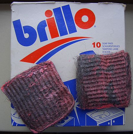 Schoonmaken van een spoel met een Brillo sponsje kan, maar verwijdert vrij veel aluminium. Als u dat regelmatig doet wordt de draad steeds platter. Beter is om te reinigen met een Spontex sponsje dat onder andere speciaal gemaakt is om de anti baklaag van pannen niet te beschadigen.