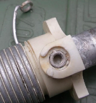 De schroefbevestiging aan de (fig») de andere kant van de spoel heeft ook een onderhoudsbeurt nodig. Verwijder vuil of oxidatie en breng eventueel als bescherming siliconenvet aan.