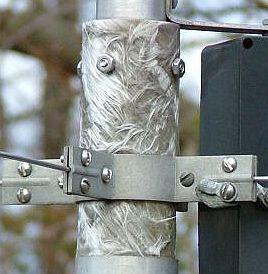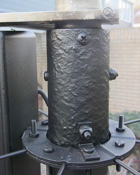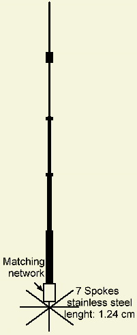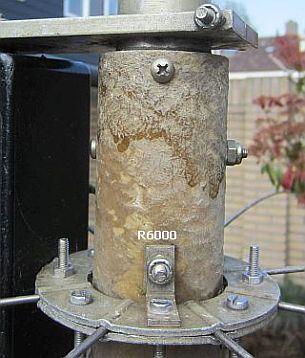 De antenne wordt uit het midden gevoed met een matching network en is bevestigd naast een isolator van glasvezel en polyesterhars. Als de laatste geruime tijd aan ons klimaat blootgesteld wordt, dan "verdampt" de hars aan de oppervlakte. De glasvezel wordt zichtbaar, is onbeschermd, werkt als spons en neemt vuil en stof op.