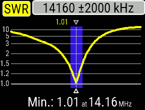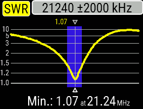 | Zonnig weer 14.160 MHz, SWR = 1.04 21.280 MHz, SWR = 1.06 28.240 MHz, SWR = 1.17 |