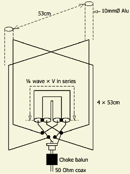 Nowadays with all those 2m repeaters and many used vertical radiators, this omni directional horizontally polarized antenna probably will not be interesting anymore. I adopted the principle of a turnstile dipole antenna (fig »).