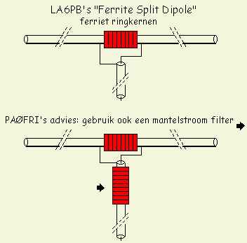 Een speciaal soort mantelstroomfilter werd door W2DU, W. Maxwell in QST maart 1983 gepubliceerd. Ik heb dit type aangebracht op al mijn coaxiale voedingslijnen. Op een dag besefte ik dat ferriet ringkernen gebruikt konden worden om een geleider elektrisch te scheiden in twee gelijke delen. Zo verkrijgt men ook een dipool.