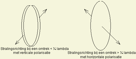 Left: The radiation direction at a circumference<¼λ and vertical polarisation Right: The radiation direction at a circumference>¼λ and horizontal polarisation |