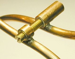 The Combi-match is also made of brass rod, but only after trial with one made of soft copper wire. It turns out that the precise attachment for a point with best SWR depends on the way the BNC connector is mounted.