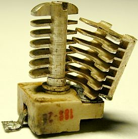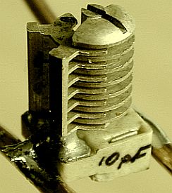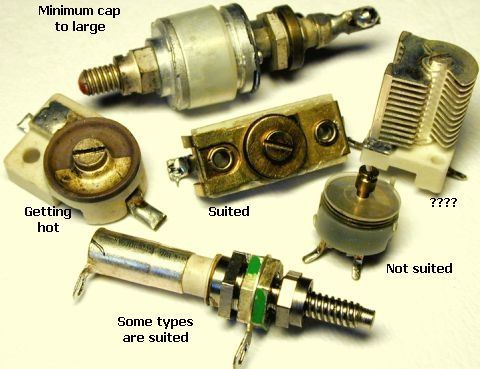 Generally one emphasises that the capacitor must be a high RF voltage type, but little attention is given on the large flow of RF current which can run. That appeared already with a power of 10 W, because some ceramic trimmers became considerably warm and that changes the capacitance. After polishing the brass that phenomenon was much less, a proof of large VHF current on surface of the rod. For use outside the capacitor should be protected with a housing l against protect against influences of weather.