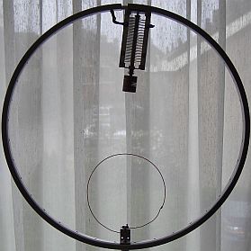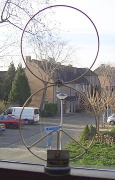 Polarisation is exactly vertical at a circumference < ¼ λ. The azimuth radiation pattern is figure-8, with very narrow nulls. Surprisingly, the nulls are not noticeable in mobile operation. In fact flutter seems to be less bothersome than with the usual ? λ or ? λ mobile whip. Note: if the circumference > ? λ the polarisation becomes horizontal!