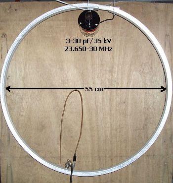 I used an aluminium cycle wheel for the loop. With a 16 - 150 pF cap the range was 11 - 30 MHz.