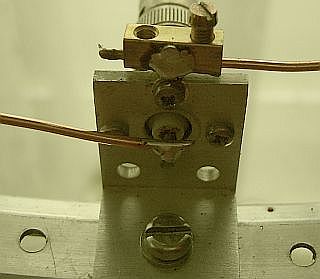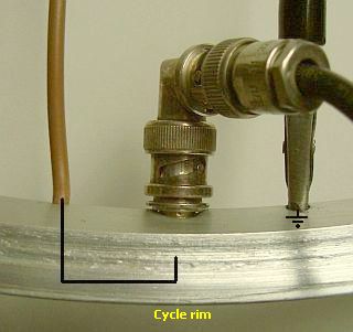 Het derde "velgmodel" voor HF met één loop («fig») werd degelijker in elkaar gezet en op een stevige zware voet met standbuis geplaatst om het geheel gemakkelijk te verplaatsen of te draaien. Met een condensator van 16 - 150 pF kon afgestemd worden van 11 - 30 MHz. De koppeling werd met behulp van het metalen deel van een kroonsteentje (fig») variabel gemaakt. Het bleek dat voor een SWR = 1 de diameter van de koppellus sterk afhankelijk was van de plaats waar de antenne staat en de stand van de antenne ten opzichte van alle andere objecten in de kamer. De proeven moeten nog eens in de achtertuin herhaald worden om uit te zoeken welke verhouding er is tussen antenne en koppellus.