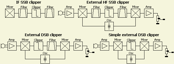 An audio or RF speech processor will give your SSB signal valuable extra "punch". An audio clipper simply either compresses or clips (or both) the audio signal. This actually ends up making your speech less intelligible, because it produces in-band distortion products. If you clip a signal, it creates harmonics, put simply 800 Hz » 1600 Hz, 2400 Hz and so on. This can (and often does) result in 'whiskers' or splatter which make the transmitted signal wider.