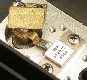 If using coax with a solid centre make sure that («fig) the tag on the resistor can extract/expand when heating up, otherwise it will crack the resistor. Be careful bending/handling the tab because it is breaks easy.