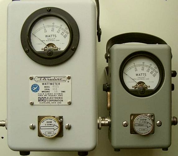 At the left a homebrew Bird clone with build in 150 Watt (hybrid) dummy load and at the right a genuine Bird 43.