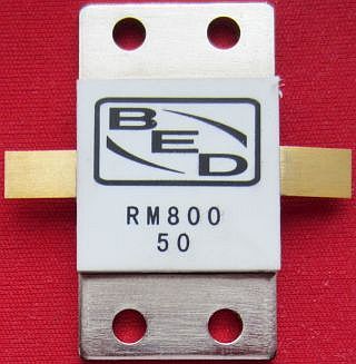 Dummy load with a 50 Ω stripline (hybrid) resistor.