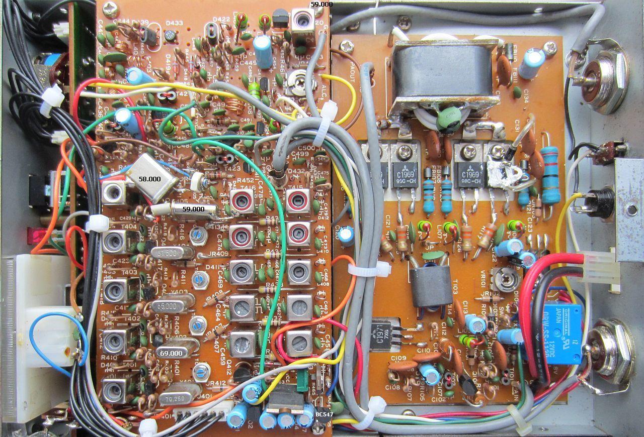 Een vorige eigenaar heeft op deskundige wijze 2 kristallen vervangen met 59.000 MHz en 69.000 MHz en de drukknop voor de voorversterker gebruikt om de CB band in te schakelen.
