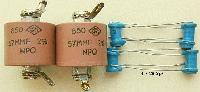 The capacitors used are 28.5 pF. Actually they are 27 pF types, but many in my stock were close to 28.5 pF. Four equal ones of 28.5 pF were selected.