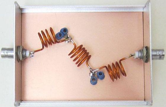 Load the filter on one side with 50 Ohm and on the other side supply a carrier wave via a SWR meter. By pressing or pulling out the coils, the lowest possible SWR is adjusted in the middle of the 4m band. Then switch the input and output and repeat the procedure. Continue until the same result is obtained on both sides.