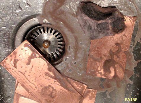 Het op maat zagen van de diverse zijwanden van het doosje heb ik weggelaten, maar u ziet u hoe oxydatie van de printplaten met schuursponsjes verwijderd werd. Dat doe ik trouwens ook. De diverse fasen van de constructie is in de volgende afbeeldingen weergegeven.