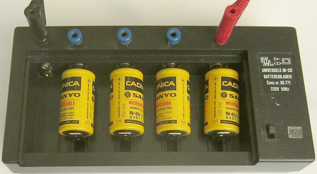Veel laders in huis werden omgebpuwd tot het asymmetrische laadsysteem of als universele houder (zoals hierboven) om 1 tot 4 batterijen of laadbare batterijen te 'reactiveren'.
