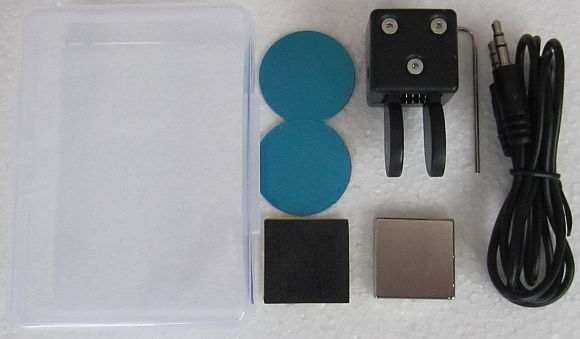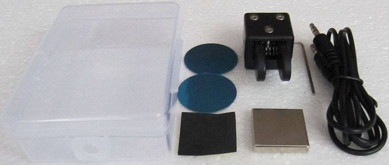 Er zit van alles bij zoals een magneet om aan de onderkant te lijmen en een inbussleutel om de contactafstand in te stellen.