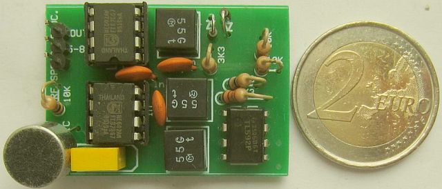 De microfoon werd extra belast door over pennen 1 en 2 van de eerste NE602A een weerstand van 1k0 te monteren.