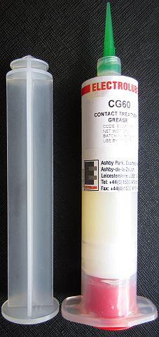 Het gaat over (fig») ELETROLUBE CG60 Contact Treatment Grease bedoeld voor contactgeleiding in de auto industrie. Het wordt in Nederland geleverd door Farnell: