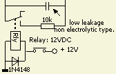 Als men veelvuldig van frequentie verandert, dan schuift de regelspanning naar de VFO steeds meer omhoog of omlaag en loopt u de kans dat de stabilisatie uit zijn bereik raakt. Met een voedingspanning van 8 V werkt de bijsloffer niet meer goed als de spanning op pin 6 lager is dan 2 V of hoger is dan 6 V. Daarom kan met een reset drukknop (fig») een relais bekrachtigd worden zodat de 2.2 μF condensator via 10 kΩ ontladen wordt en de halve voedingsspanning terugkeert. Het relais werd bij mij toegepast om een knop van een transceiver een dubbele functie toe te kennen. U kan eventueel het relais weg laten (fig») en het resetten alleen met een drukknop doen. Bij het ontwerp van de volgende gaatjesprint is het relais weggelaten.