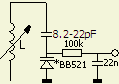 Er is in mijn gewijzigde ontwerp een extra 10 kΩ weerstand van pin 6 naar aarde toegevoegd. De 2.2 μF condensator behoudt vrij lang zijn lading als de set tijdens experimenten veelvuldig aan en uitgeschakeld wordt. De weerstand versnelt de ontlading. In bedrijf moet de schakeling dan meer zijn best doen om de spanning voor de varicap diode constant te houden en dat verbetert (volgens mij) de stabiliserende werking.