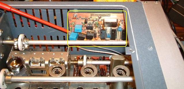 PA0CMU's printje en mijn vorige stabilisator, maar met voorversterker en relais. Hier werd nog een ± 52 MHz overtone kristal oscillator gebruikt. |