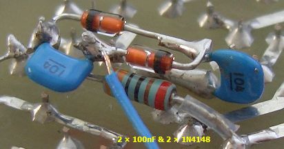Dit werd het eerst en het werkt goed, maar later (zie verderop) kwam er nog een aanvulling. Let op: in mijn apparaat staat de 47 kΩ potmeter op maximum en is dan eigenlijk overbodig. |