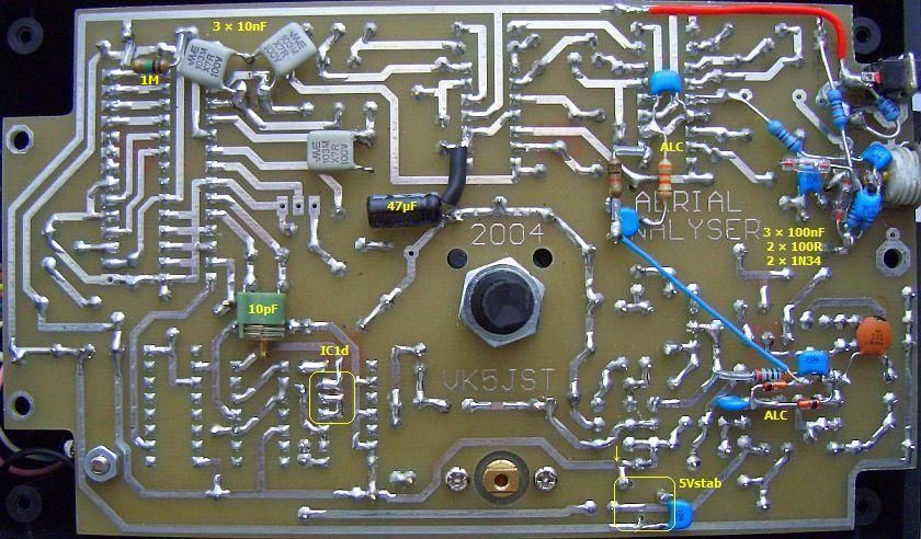 De modificaties werden gedeeltelijk aan de sporen en componentzijde gemonteerd met minimale veranderingen van de printsporen.