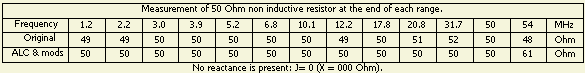 De ALC regeling werkt goed en het signaal op TP1 kan op 2 MHz van ongeveer 1.7 V tot 1.58 V teruggeregeld worden. Voorlopig werd een ingesteld op 1.58 en een verbetering ten opzichte van de originele schakeling is in de tabel weergegeven.