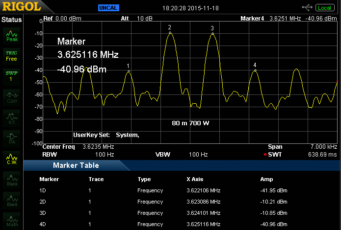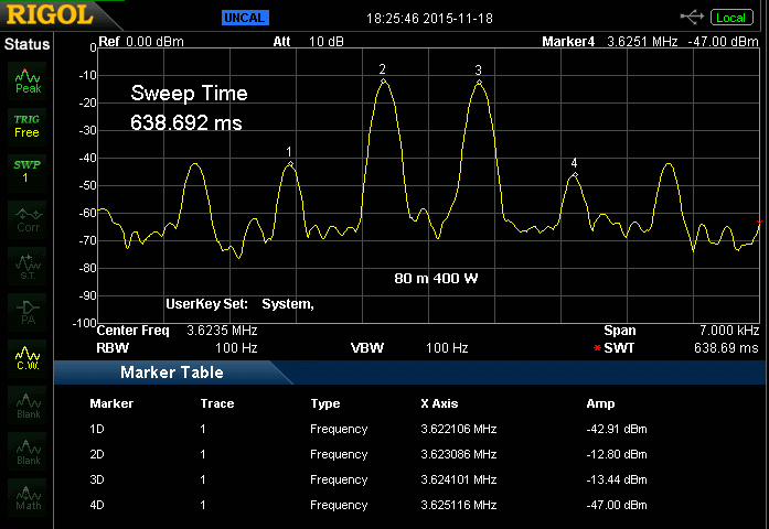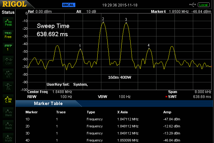 After mounting all modifications the power was measured with a Bird watt meter, 2500H (2.5 kW element, insert, slug, turret) and Bird dummy load. Drive power was always kept at 100 W. Please note that the output in the table is partly achieved by exceeding the maximum grid and anode current. With SSB and negative feedback modification one could keep the measured transmit power safely because the average value is lower than with a carrier.